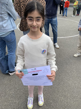 In dieser Wochen wurden die Kinder in verschiedene Ateliers geschickt um die Kinder auf die Einführung der "Friedensstifter" vorzubereiten. In der 3./4. Klasse gab es Themen wie "Fair Play Spiele", "Streit", "Wut", Friedensfahnen herstellen und "Mutspiele". Ab Donnerstag durften dann je zwei gewählte Kinder pro Klasse (ein Bube und ein Mädchen) in die Ausbildung als PeacmakerIinnen gehen. Zum Abschluss wurden diese Kinder am Freitagnachmittag feierlich vorgestellt und erhielten ein Diplom....